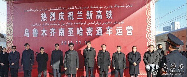 上午11时,中共中央政治局委员、自治区党委书记张春贤大声宣布:“发车!”随着一声响亮的鸣笛,新疆首趟D8602次和谐号动车缓缓驶出乌鲁木齐火车南站。至此,新疆首条高铁——兰新高铁乌鲁木齐南至哈密段正式通车运营,新疆跨入高铁时代。