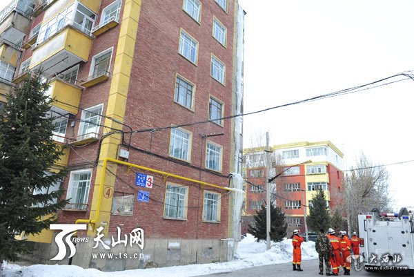 2月25日下午16时35分许,阿勒泰市大队将军山中队消防官兵接到阿勒泰市平安巷一小区居民的求助电话,称路边楼房挂着一个巨型冰柱,给过往车辆以及行人带来了不小的麻烦。消防官兵来到该小区,看到居民楼的正上方有一个巨型冰柱,从六楼楼顶一直垂到一楼地面,约有20多米长,直径较宽处有1米,二楼处的天然气管道和电缆线也被包在冰柱中。
