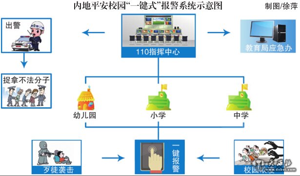 2014年10月,“一键式”报警系统在武汉市中小学、幼儿园推广。