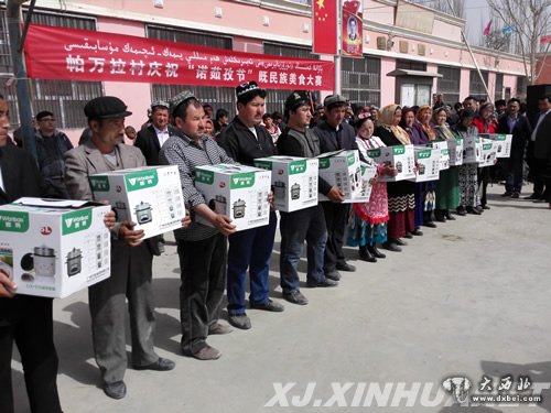 2015年3月21日,阿瓦提县英艾日克乡帕万拉村,村民与工作组一起共贺节日的到来。