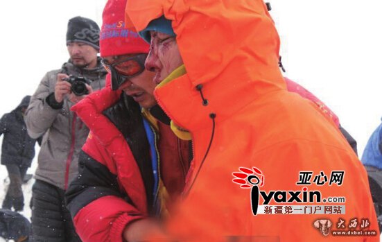 这一路上,可以看到沿途的伤亡情况,天上下着大雪,很多登山者满脸是血,有人骨折正在包扎。登山者自救互助场面感人