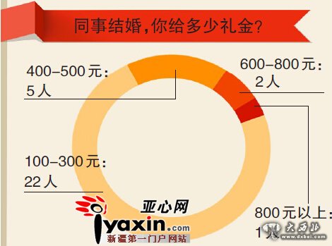 “虽然说份子钱给多少随个人,但到底给多少合适还真的要考虑下。”市民李园说,一般同事之间给多了,关系还没到那个程度,给的少了,又难免被同事说太小气,“我是随大流,和大家给的一样多,一般也就200元。”
