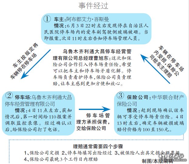 乌鲁木齐利通大昌停车经营管理有限公司项目负责人表示,车主可放心在医院照顾家人,公司将安排专人将车辆送到定损点安装玻璃。