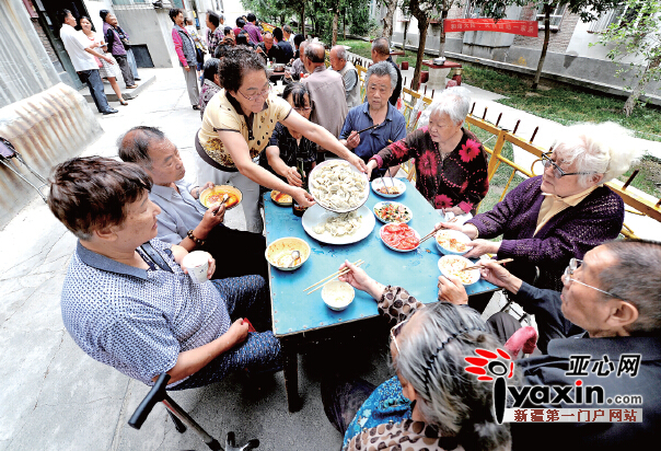 大西北网讯 7月29日14时许,东环路新疆八艺印刷厂家属院3号楼下,5张不同款式的圆桌依次排开,约50名老人围着圆桌吃着热腾腾的饺子,格外热闹。这些饺子是他们亲手包的,这样的聚餐在过去的10年间从未间断。