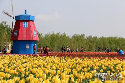 2016年“五·一”小长假期间,游客在五家渠观赏郁金香。(资料图 金浩 摄)