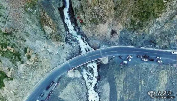冰川融水化作潺潺细流,从陡峭的山顶倾斜而下,遥看瀑布似从天山来。停车区域从独山子方向看,山路错综盘旋,十分适合拍摄路的延伸,再有一排飞驰的车队,轻松拍出大片。