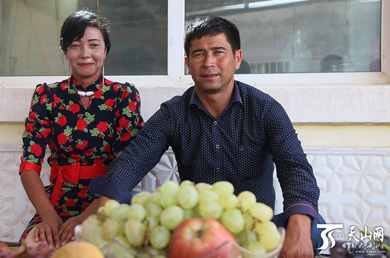 阿巴斯·艾台克和妻子在家里准备了丰盛的果盘招待客人。