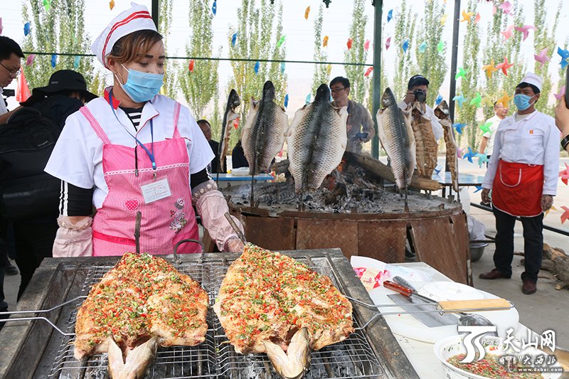 温宿县柯柯牙镇的老百姓烤制的烤鱼。