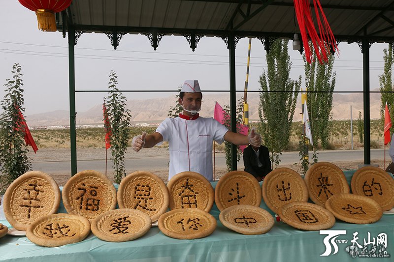 温宿县柯柯牙镇的老百姓把幸福生活的真谛写在馕上。
