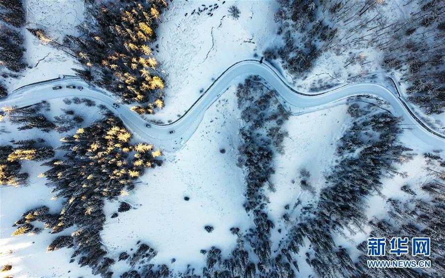 这是新疆喀纳斯景区风光(1月1日无人机拍摄)。 新华社记者 赵戈 摄