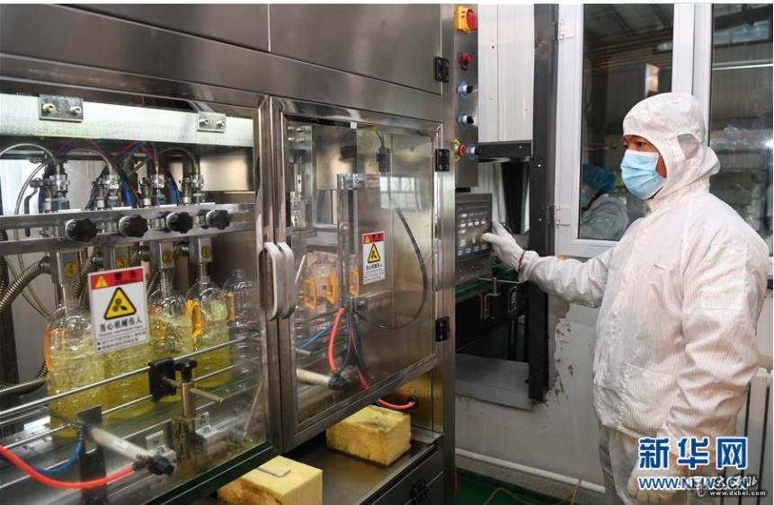 4月7日,新疆察布查尔锡伯自治县红花产业园伊犁雅其娜农业发展有限公司灌装车间员工在工作中。近年来,新疆察布查尔锡伯自治县大力发展红花产业,相继引进多家企业发展红花系列产品,目前全县种植红花13万亩左右,红花已成为察布查尔县助农增收的特色产业之一。新华社记者沙达提摄