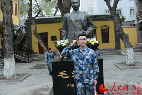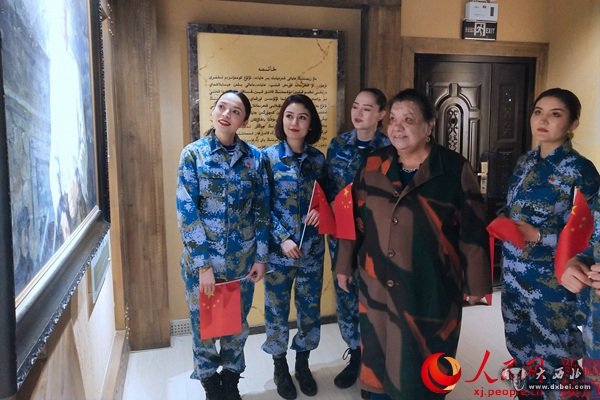 阿木拉汗·满苏尔和海军退役女兵后辈们一起参观毛泽民故居。刘海摄