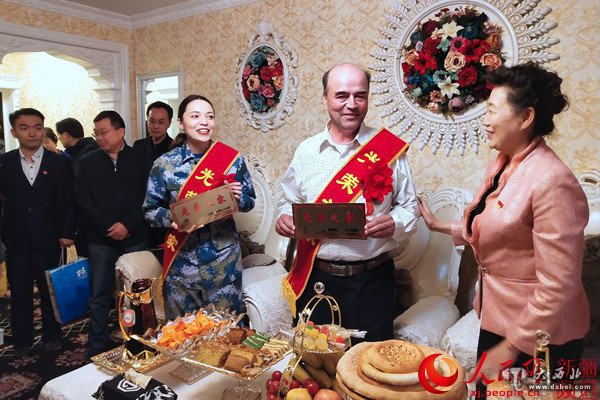 自治区退役军人事务厅领导为买哈巴·阿力木家颁发“光荣之家”牌匾。刘海摄