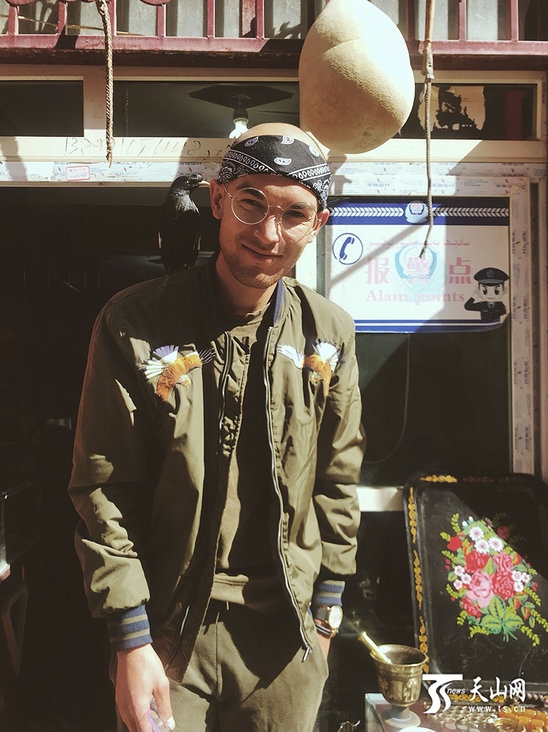天山网讯(记者王晶晶报道)5月28日,喀什老城景区里,姜黄色墙体和宝蓝色木门的后面,一个戴金丝边眼镜、穿卫衣的年轻人正在文创店里忙碌着,他看上去很时髦,但他说自己的工作和时尚没关系,他的主业是——复古。这个小伙子叫麦吾兰·图拉克,他的文创店里摆着200多件比他年长很多的手工艺饰品和服装,25岁的他对这些物件的名字、用法、来历如数家珍。