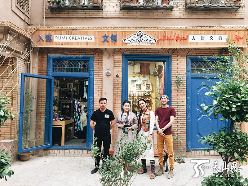 麦吾兰·图拉克和朋友在文创工作室门口合影。(图由受访者提供)