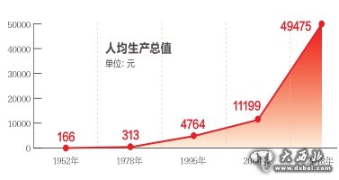 新中国成立以来,伴随着新疆经济社会的快速发展,人均生产总值由1952年的166元到1987年迈上了1000元的平台,2004年突破10000元大关,标志着新疆经济进入了一个新的历史阶段。2018年攀升到49475元,成功由低收入地区跨入中等收入地区行列。(张永)