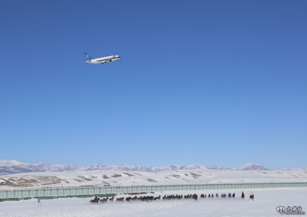 1月28日,昭苏—乌鲁木齐航班从昭苏天马机场起飞。新华社发(李文武摄)