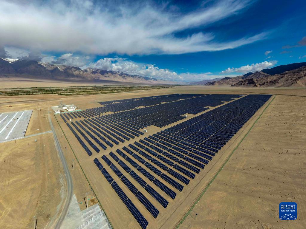 这是深圳援建的新疆塔什库尔干塔吉克自治县2万千瓦太阳能光伏扶贫电站(无人机照片,2020年6月15日摄)。新华社记者胡虎虎摄