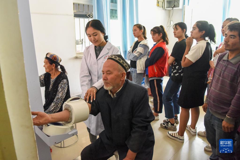 在新疆和田市伊里其乡中心卫生院,居民接受免费健康体检(2019年8月23日摄)。新华社记者丁磊摄