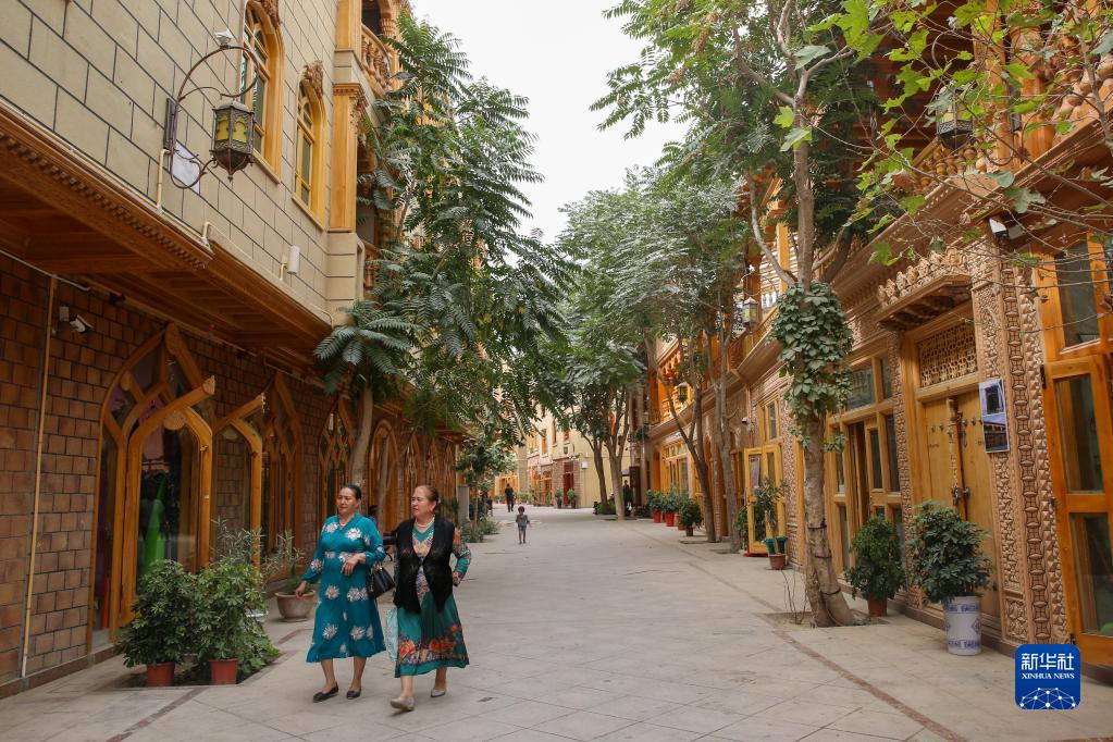 这是在新疆和田市拍摄的由北京市援疆资金支持改造的团城(2019年8月1日摄)。为改善居住环境,保持和田历史文化街区风貌,当地利用北京市援疆资金,对和田老城区进行保护、安居、旅游与就业四位一体的改造。新华社发(许珠珠摄)