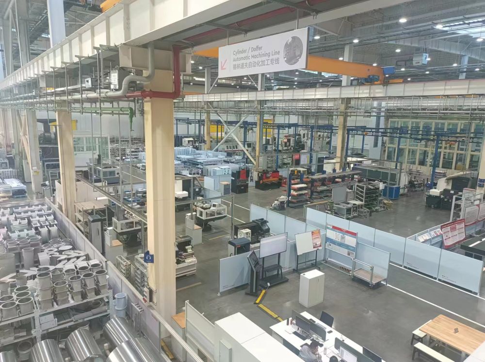 2022年12月13日,新疆一家生产智能纺纱机的企业全自动生产线有序运行。(新华社记者潘莹摄)