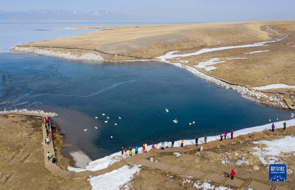 4月,随着气温不断升高,新疆博尔塔拉蒙古自治州的赛里木湖也奏响了春天的序曲。冰封数月的湖面逐渐融化,巨大的冰面在湖水的作用下涌向岸边,绵延数十公里,蔚为壮观。因湖水含有矿物质,“冰推”期的赛里木湖冰面呈现独特的淡蓝色。虽然不在旅游旺季,每日仍吸引数千名游客前来打卡。