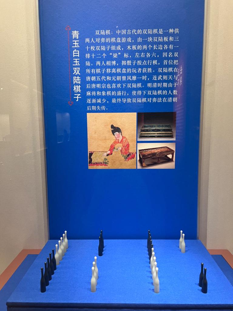 “每个单元的文物都有它的历史价值,‘乾隆御题青玉盘’‘青玉白玉双陆棋子’等玉器与新疆渊源颇深。”张林杰说。