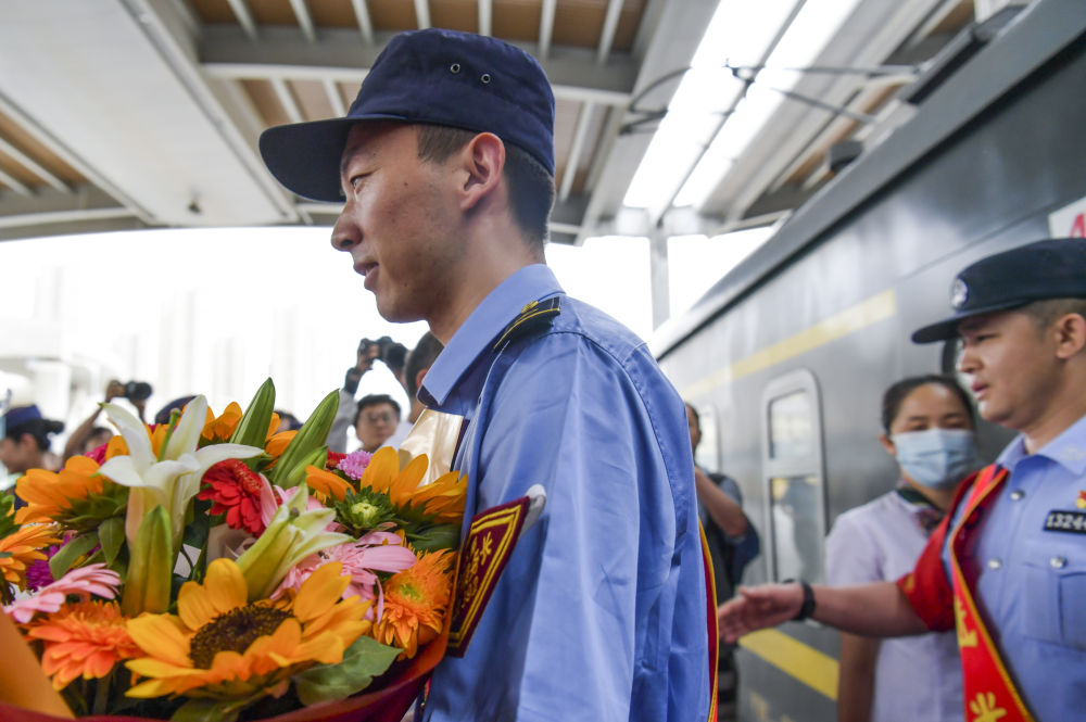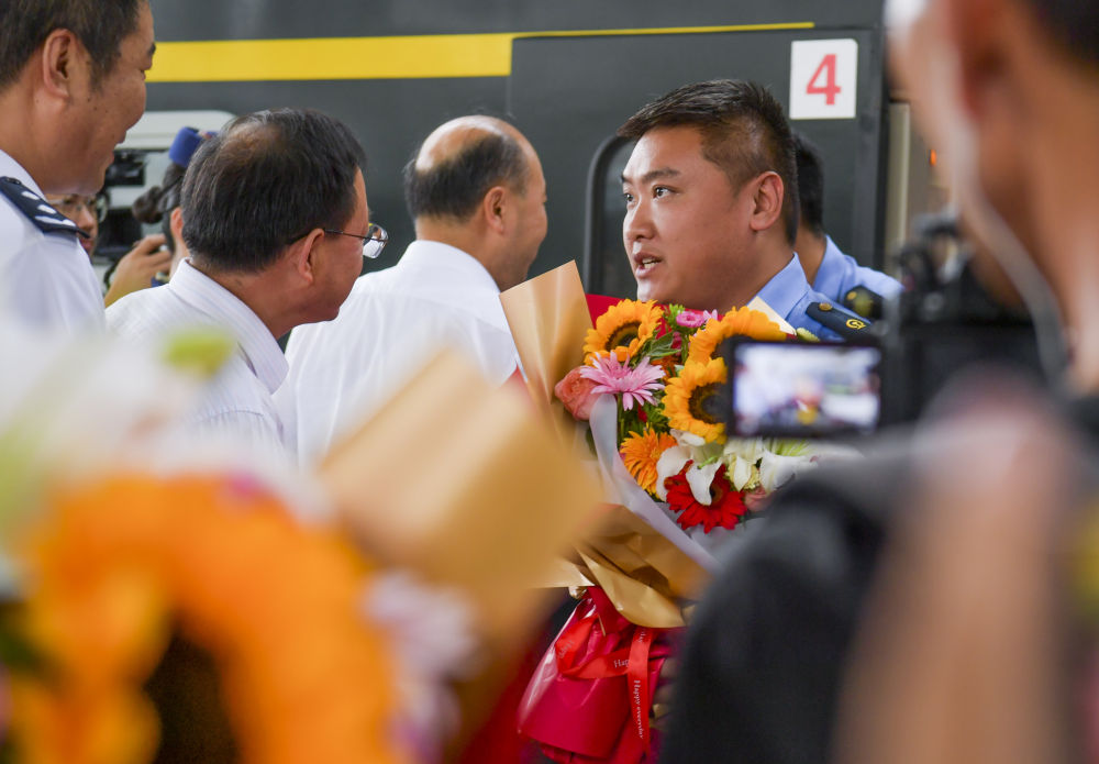 因强降雨滞留北京的Z180次列车乘务组于当日返回乌鲁木齐,乘务人员的家属、同事等前往乌鲁木齐站迎接。