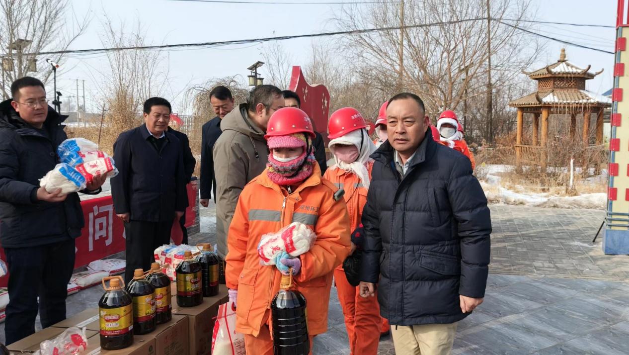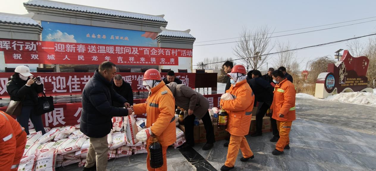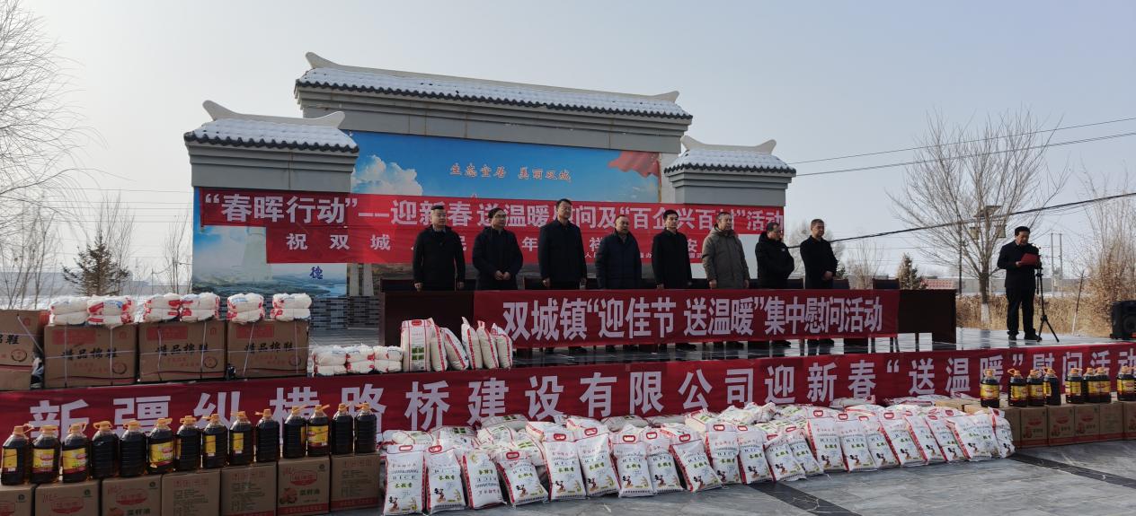大西北网武威讯(记者张国伟)春节将至,岁寒情深。2月7日,武威驻疆办、武威市工商联联合新疆武威商会会员企业新疆纵横路桥建设有限公司组织开展2024年“春晖行动——迎新春·送温暖”慰问暨“百企兴百村”系列活动,看望辖区内环卫工人、低收入家庭、独居老人等,为他们送上米面油慰问品和新春美好的祝福。