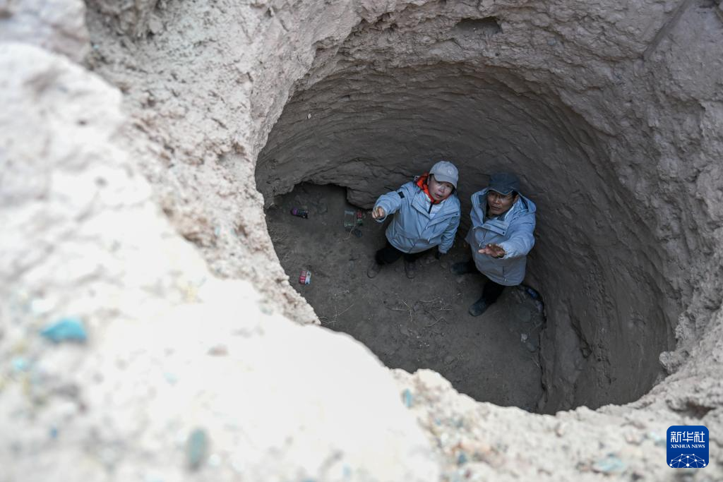 在新疆克孜勒苏柯尔克孜自治州乌恰县,考古专家覃大海(右)和新疆古道研究专家骆娟查看一处古代居住遗址(10月26日摄)。