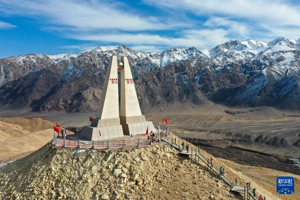 这是在新疆克孜勒苏柯尔克孜自治州乌恰县拍摄的中国西极碑(10月25日摄,无人机照片)。