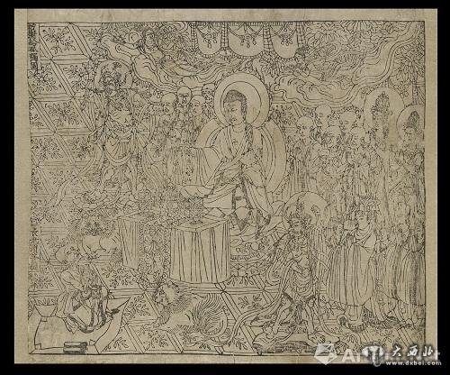 然而整个展览最无价的珍品莫过于现为大英图书馆收藏的“金刚般若波罗蜜经”,卷首为一幅“释迦牟尼说法图”的扉画,技法遒美纯熟,卷尾则有“咸通九年”(868年)的年款,是目前世界上现存最早有明确纪年的刻本——甚至早于西方古腾堡发明印刷术数百年。这件“金刚经”,由六块雕版、6张纸印刷,再加一张扉页画,连成一幅长卷,原为唐懿宗时代人王玠为亡故双亲发愿所刊刻。