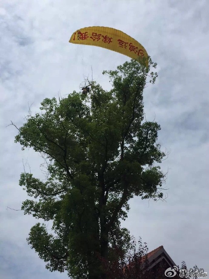 @三峡晚报【宜昌男子用开滑翔伞求婚不想被风吹挂在树上】#521表白日# 上午,宜昌一男子在龙盘湖世纪山水,乘坐滑翔伞在空中向女朋友求婚。但在低空欲降落时,因一阵强风被刮到树上。男子挂树上近1小时,最后请来吊车前来救援。辛苦下树的男子手抱花束,来到女子面前求婚。但女子没有答应转身离去……网友:天不助人,好悲剧!你觉得女子应该答应求婚吗?