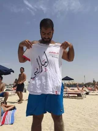 △ 穆罕默德拿着一件写着爱国文字的阿联酋衬衫
