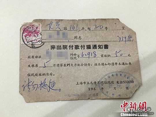 中新网上海6月1日(记者 陈静)今天是六一国际儿童节,上海市儿童医院北京西路院区来了两位特殊的“客人”。他们径直找到了医院出入院处,拿出三张老旧的“催款单”,提出要“还钱”。院方工作人员甚是惊讶。