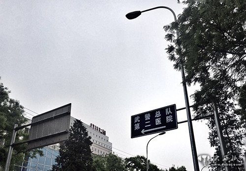法制晚报讯 今天下午,法制晚报(微信公号ID:fzwb_52165216)记者发现,武警总队第二医院大楼楼顶上标牌和在月坛北街的大型路牌近日被摘下。
