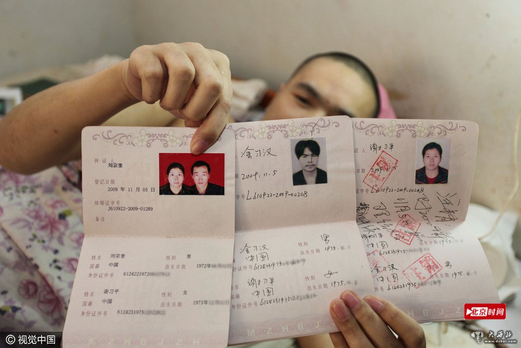 涂习汉要给兄弟一个名份,那时谢习平不想离婚,但一个女人家能撑起这样一个家吗?当天下午,他和谢习平办理了离婚手续,并亲眼见证刘宗奎和谢习平领取了结婚证。民政局的工作人员被这家人感动,特事特办为他们颁发了特殊意义的离婚证和结婚证。