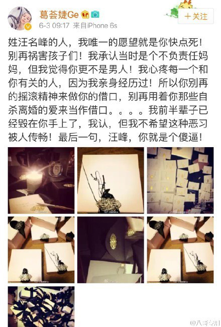 葛荟婕“炮轰”汪峰微博截图