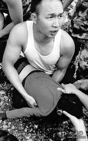 小孩被救出后,赵云松将其头朝下趴在腿上控水。