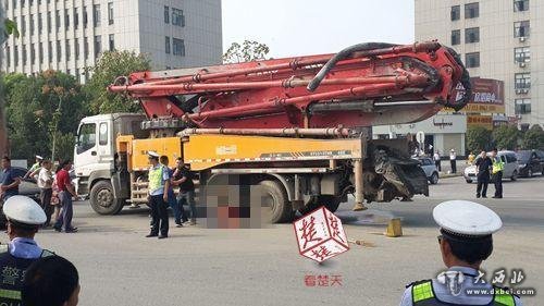 楚天都市报9月10日讯(记者李曼英 黄士峰)今早8时,东西湖区宏图路与金潭路交会处,一名女环卫工遭混凝土泵车碾压,不幸当场身亡。