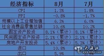 第五大亮点是工业生产者出厂价格降幅大幅收窄。8月份PPI下降0.8%,降幅比上个月收窄0.9个百分点。工业生产者出厂价格降幅收窄意味着国内市场供求关系有所改善,因为价格最终是供求关系的客观表现。