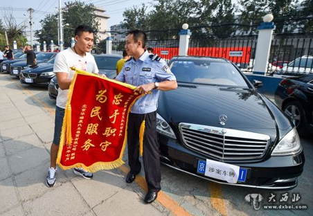今天下午3点,在朝阳公安分局东坝派出所内,冯先生和公司员工从民警手中领回失而复得的11辆车。