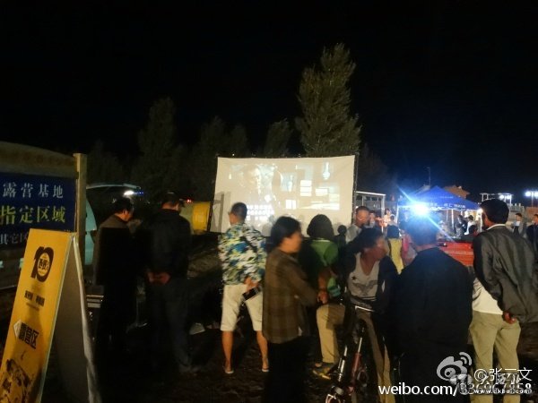 夜终于来了,吉他叮咚作响,随之歌声从四面八方传来,灯火闪耀,那是露营者帐篷里的灯光、是移动汽车的灯光、是人们喝酒行令游戏娱乐照明的灯光……十几幕露天电影在这里放映,自助烧烤的火焰映着人们的笑靥,孩子们在沙地上愉快的奔跑……人们通过各种方式释放城市紧张工作带来的压力,无拘无束地享受着远程驾驶和户外生活的乐趣。