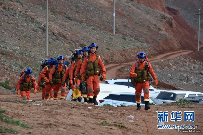 5月23日,救援人员徒步进入事发区域搜救失联人员。新华社记者范培珅 摄