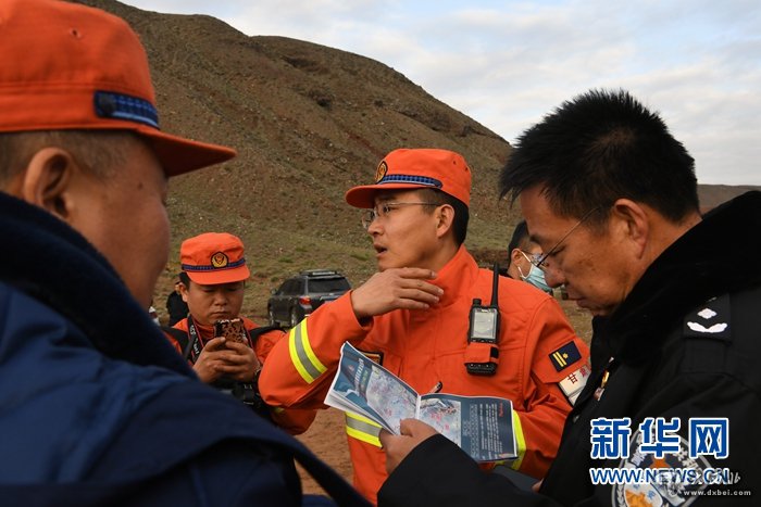 5月23日,救援人员在事发区域商议搜救失联人员细节。新华社记者范培珅 摄