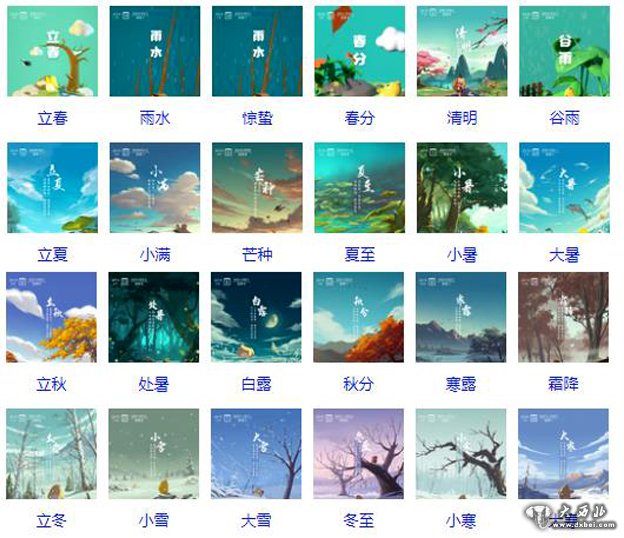 24节气分别为:立春、雨水、惊蛰、春分、清明、谷雨、立夏、小满、芒种、夏至、小暑、大暑、立秋、处暑、白露、秋分、寒露、霜降、立冬、小雪、大雪、冬至、小寒、大寒
