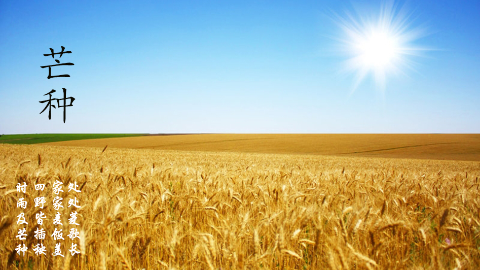 注:芒种时节,中原各地为小麦抢收期,时不过三候。稃舟:麦粒外包之稃。稔颗:成熟的麦子。赤子:麦粒在稃皮的包裹之下,像初生之婴儿。鸿声:鸿蒙之声,此处指麦子成熟时的声音。灵歆:神灵享用的祭品,此处以表圣神感。黄云:指成熟的麦田。