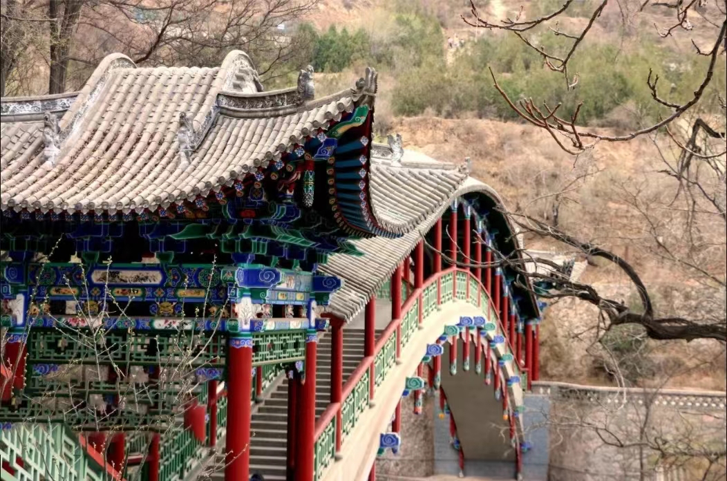 车过高楼林壑静,薄雾伴人行。禽鸟双双深树鸣。异卉向人迎。 十八曲盘如龙舞,势若上浮清。更有禅音似缕萦。岁岁祷安宁。