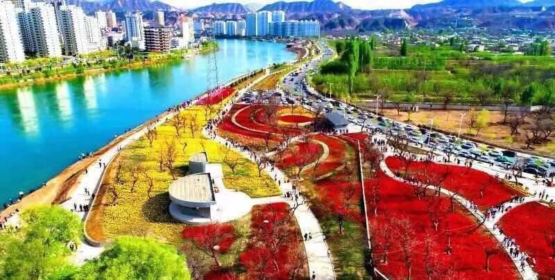 一路新颜越渭河,春风已远夏花多。