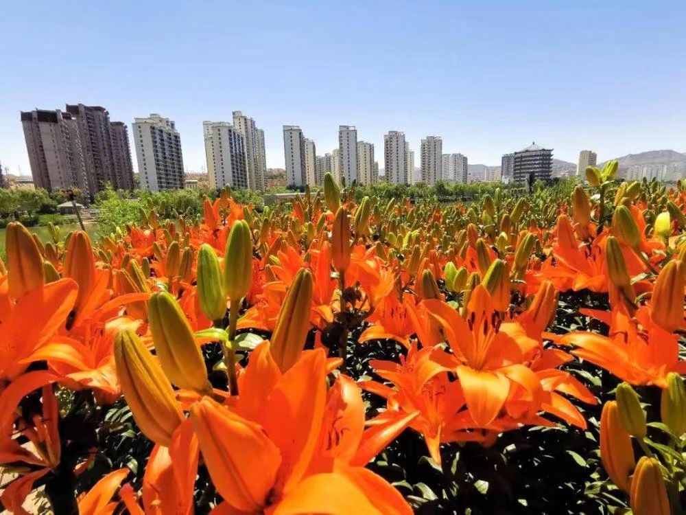 夏末高原烈日阳。黄花开半满香墙。风吹金浪逐翻塘。马场茵依旧绿,扁都口蝶伴飞狂。旧时皇牧更新妆。